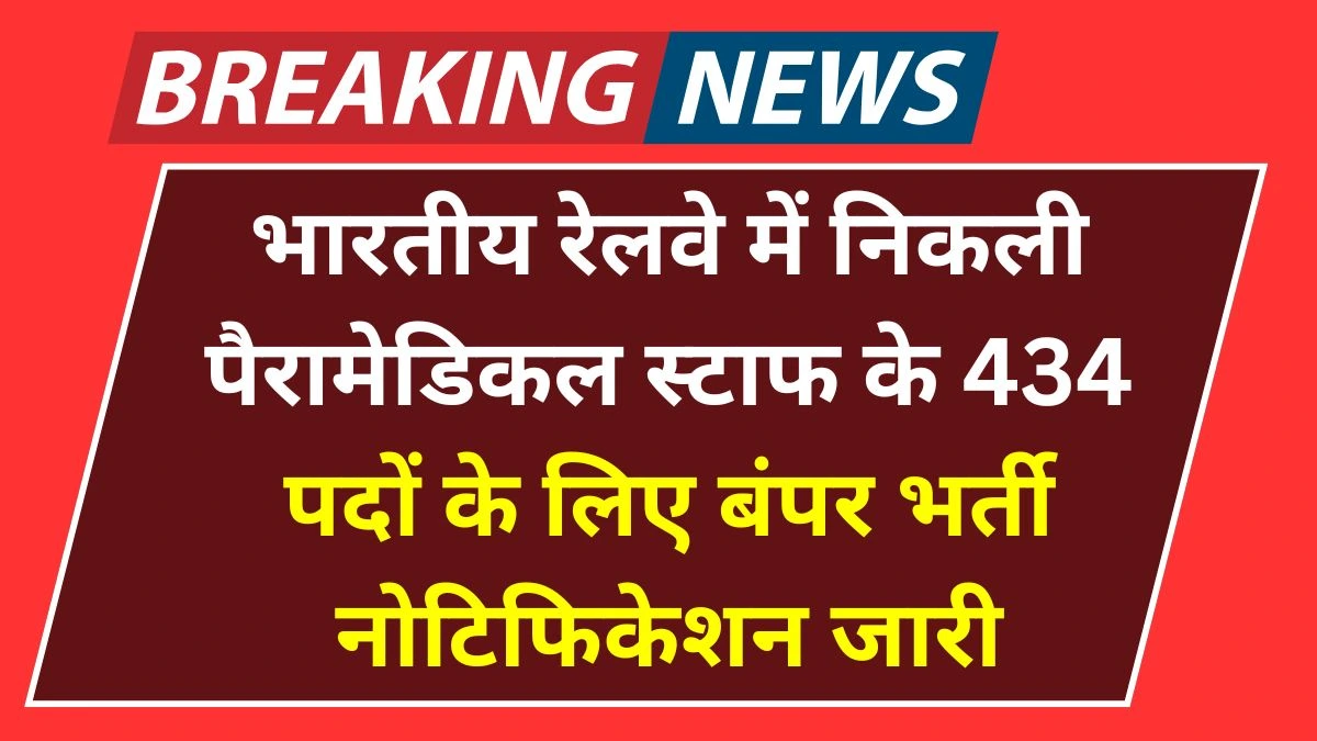 RRB Paramedical Staff Recruitment 2025: रेलवे भर्ती बोर्ड (RRB) ने पैरामेडिकल स्टाफ के पदों पर बड़ी भर्ती का नोटिफिकेशन जारी किया है। इस भर्ती अभियान के तहत कुल 434 पदों पर उम्मीदवारों का चयन किया जाएगा। इच्छुक उम्मीदवार आरआरबी की आधिकारिक वेबसाइट www.rrbapply.gov.in के माध्यम से ऑनलाइन आवेदन कर सकते हैं। आवेदन की प्रक्रिया शुरू हो चुकी है और फीस जमा करने की आखिरी तारीख 10 सितंबर 2025 निर्धारित की गई है। वहीं, आवेदन फॉर्म में सुधार करने के लिए करेक्शन विंडो 11 से 20 सितंबर 2025 तक खुली रहेगी। यह भर्ती खासतौर पर उन युवाओं के लिए सुनहरा अवसर है, जो रेलवे के मेडिकल डिपार्टमेंट में करियर बनाना चाहते हैं।